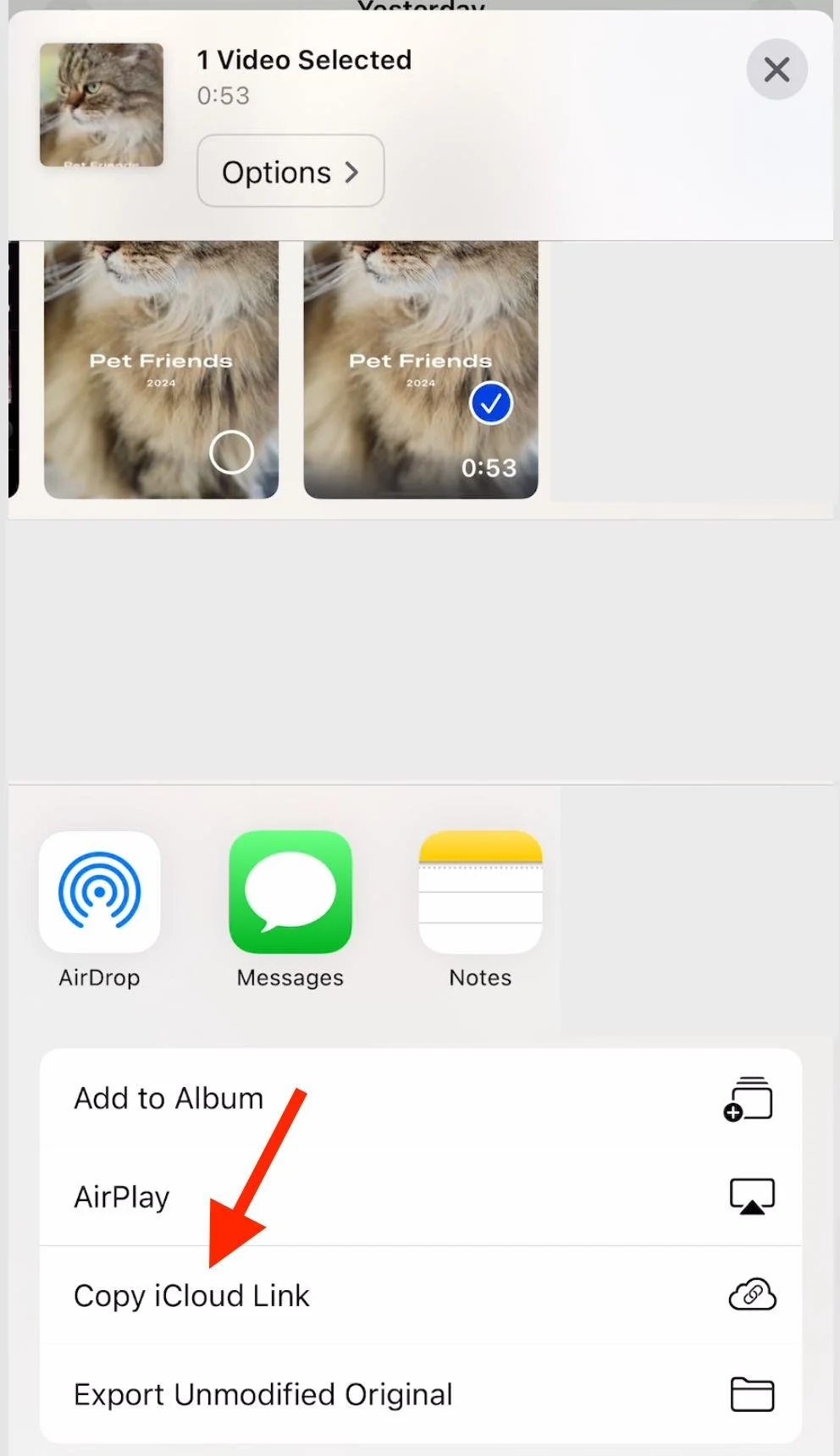 If you have a video on your iPhone and you want an easy way to share it, use the “Copy ICloud Link” and then send it.